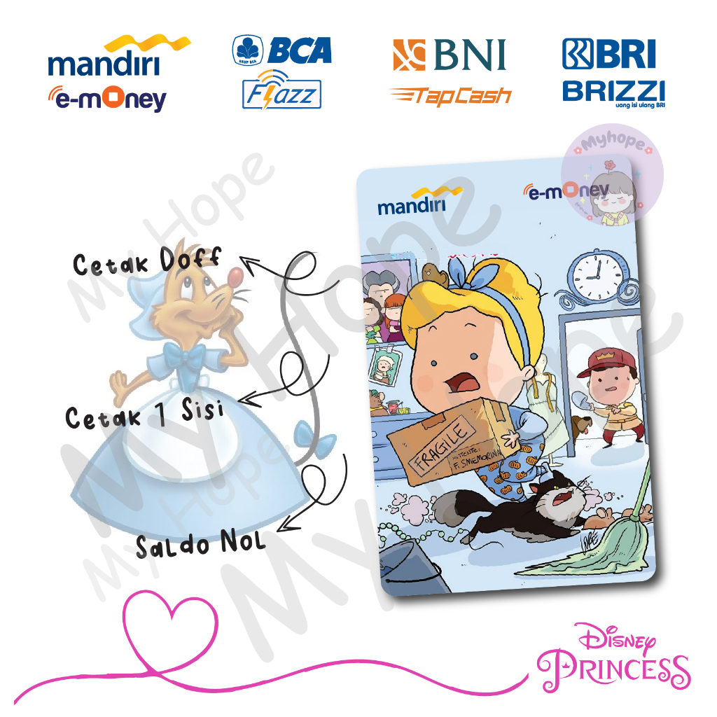 Emoney Custom Etoll Princess Disney at Home Cute Lucu Part 2 Kartu Mandiri E-money E-toll Bca Flazz Bni tapcash Bri brizzi Saldo Nol 1 sisi