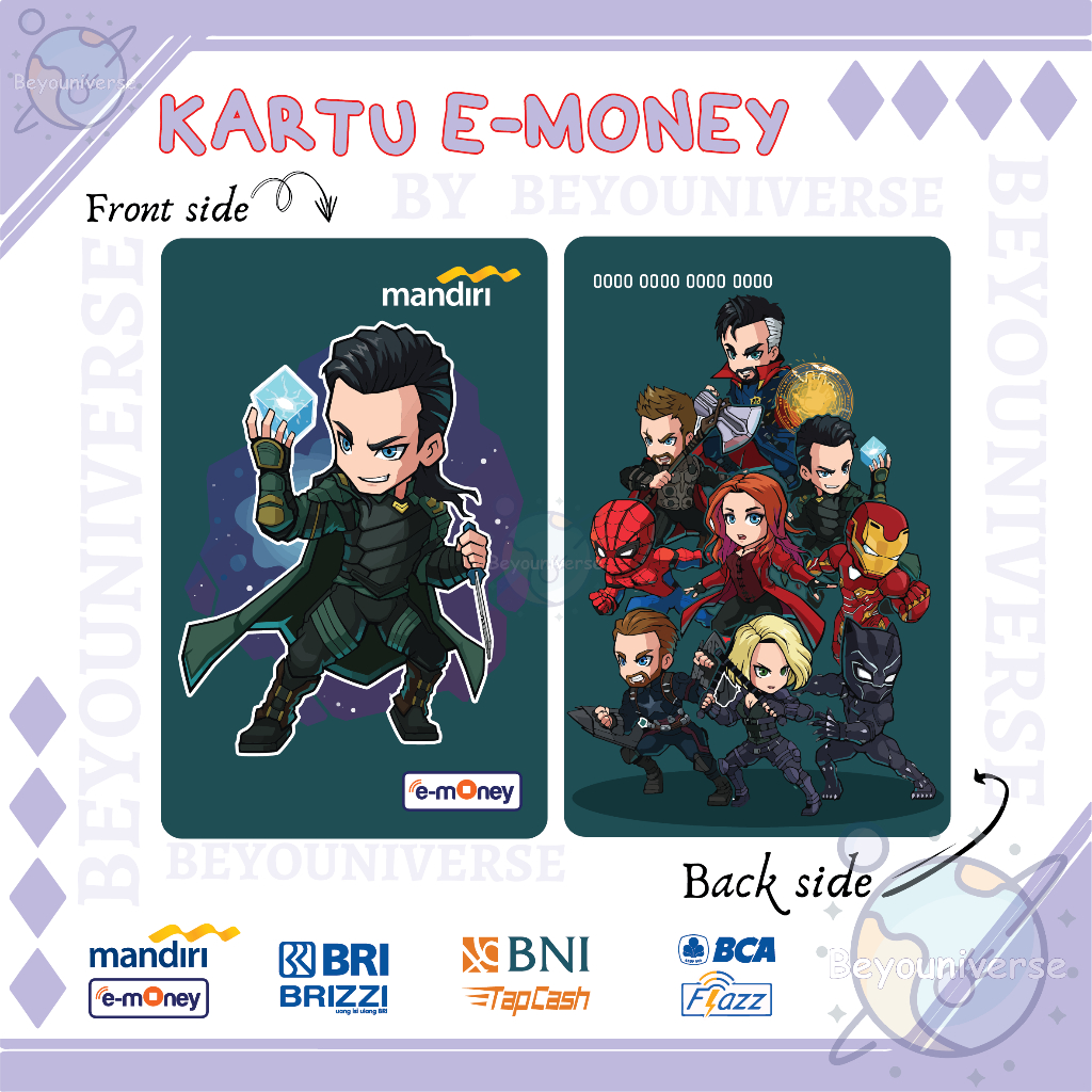 Emoney Flazz Etoll Marvel Superhero Infinity War Spiderman Ironman Kartu Mandiri E-money BCA Flazz E-toll BNI Tapcash BRI Brizzi 2 SISI