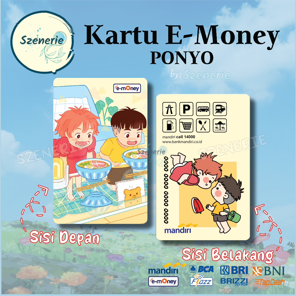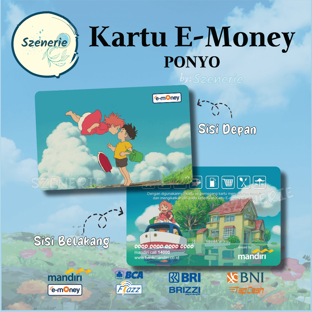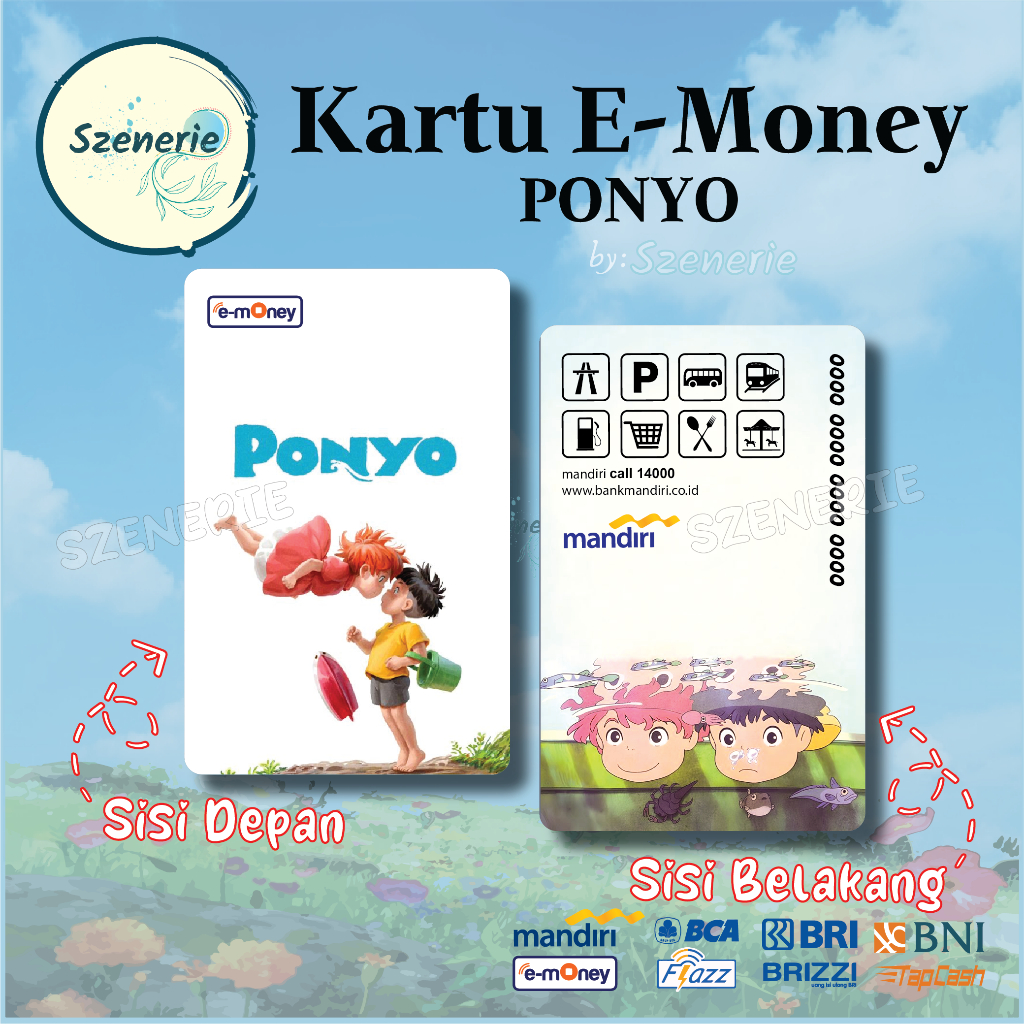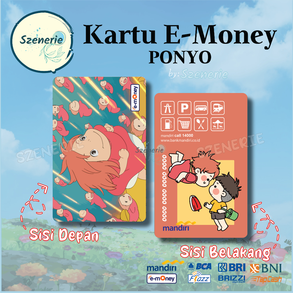 Emoney Studio GHIBLI Ponyo Flazz gen 2 Kartu E-money Mandiri BCA Tapcash BNI Brizzi BRI NFC Cute Lucu GIBLI Mermaid - 2 sisi muka