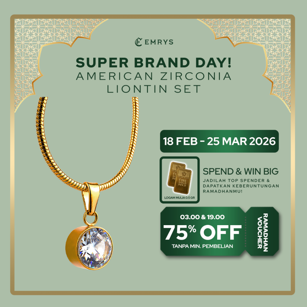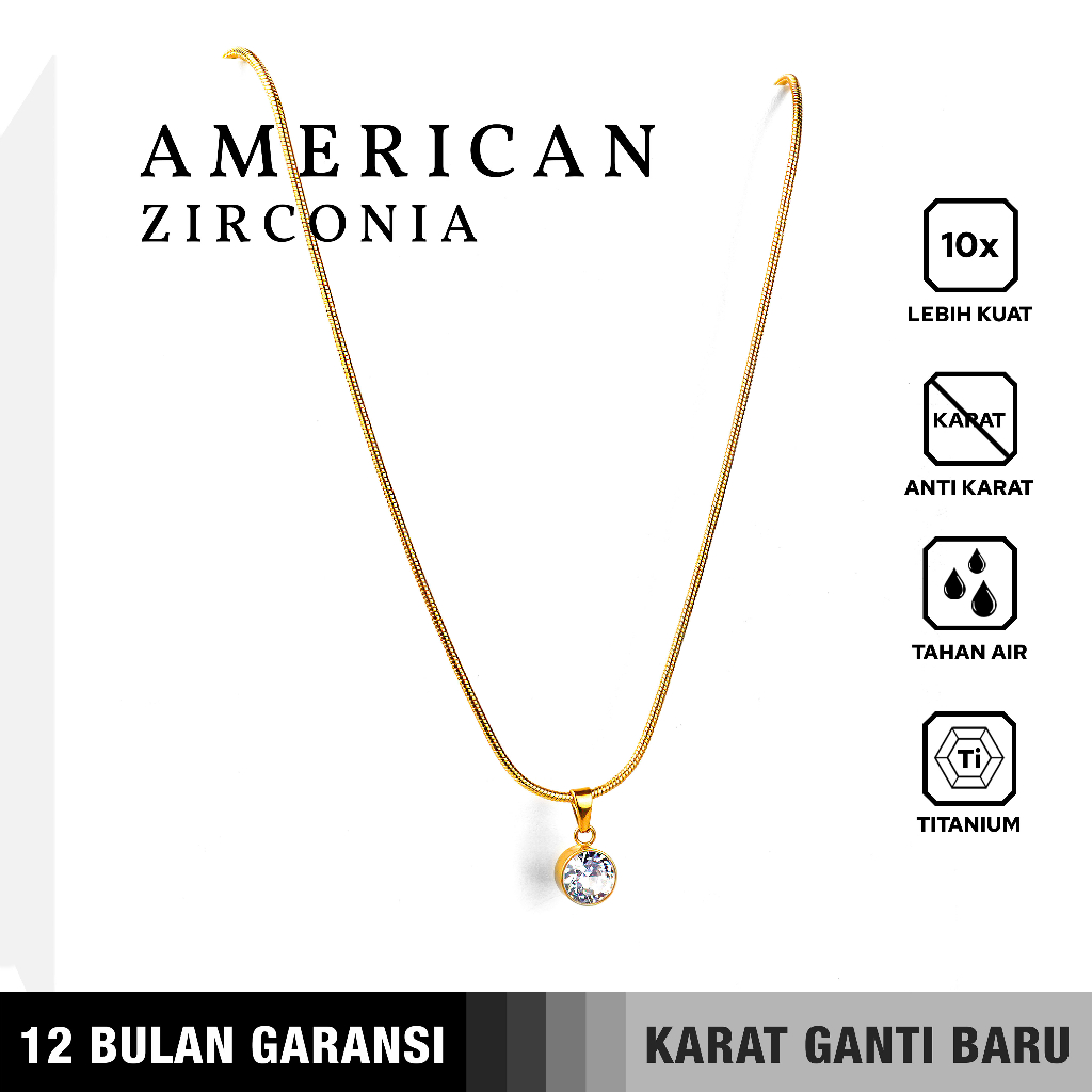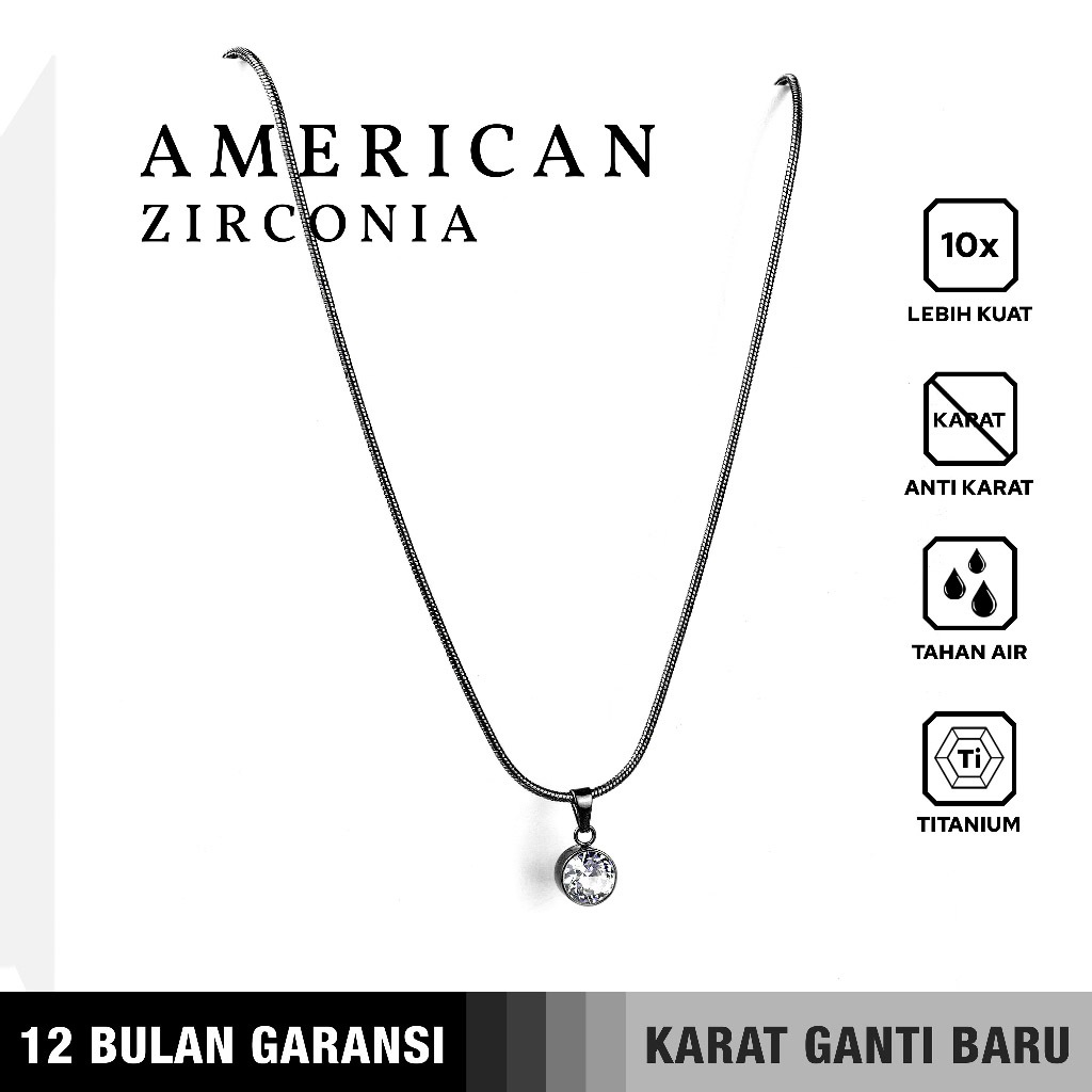 [SPECIAL PROMO] BUY 1 FREE 1 GIFT Emrys Liontin Set AMERICAN ZIRCONIA Kalung Liontin Titanium Anti Karat Pria Wanita