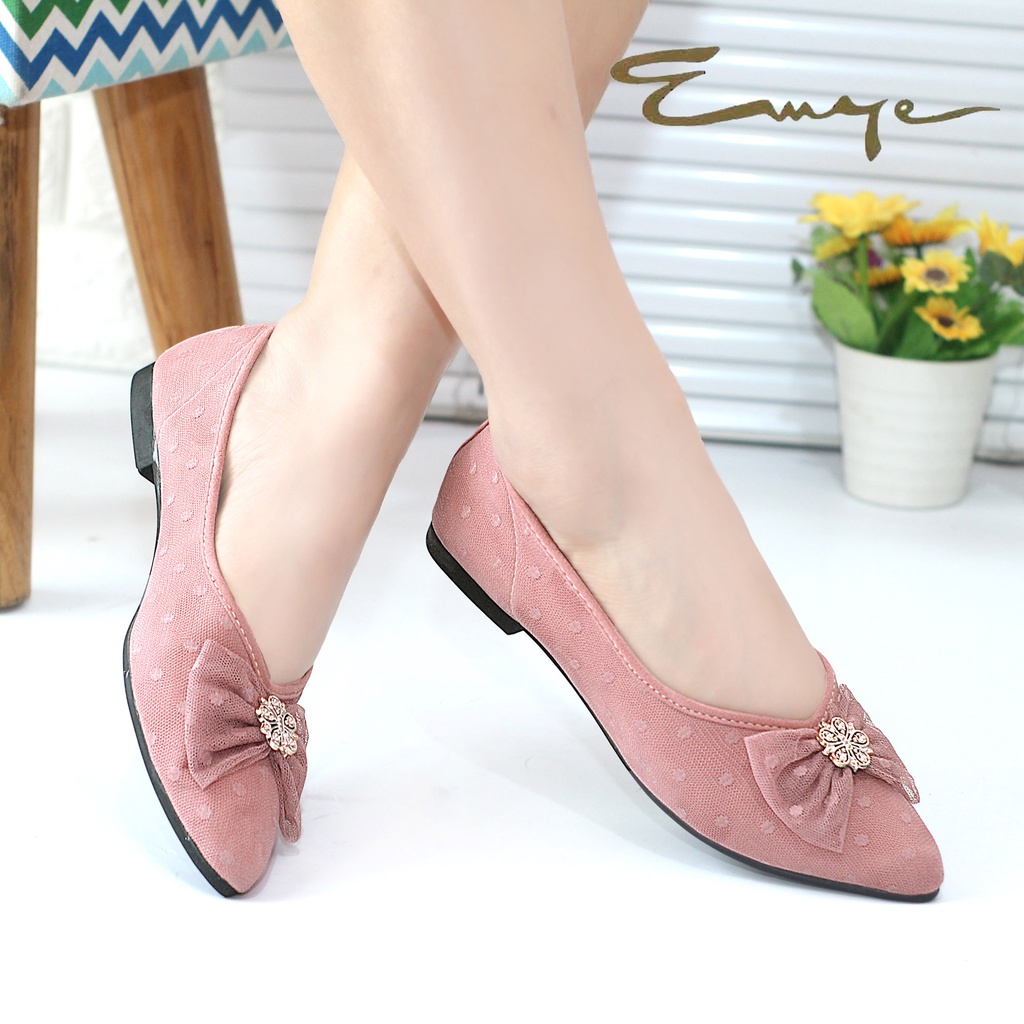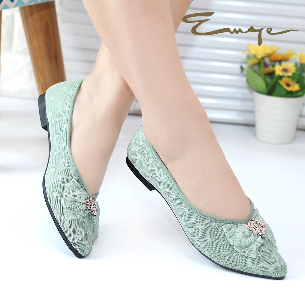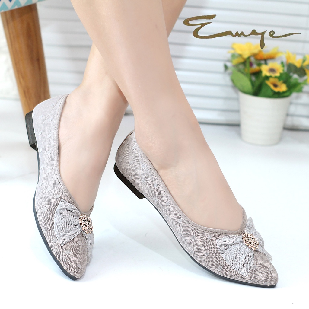 Emye - Sepatu Balet Wanita Flat Shoes Wanita Brukat Tulledot Brokat Ballet Teplek