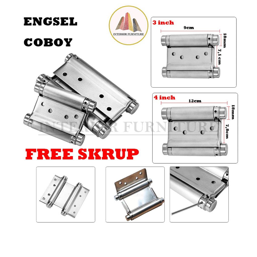 Engsel Koboi 3 inch 4 inch & 5 inch / Engsel Koboy Engsel Pintu Dua Arah Stainless Steel