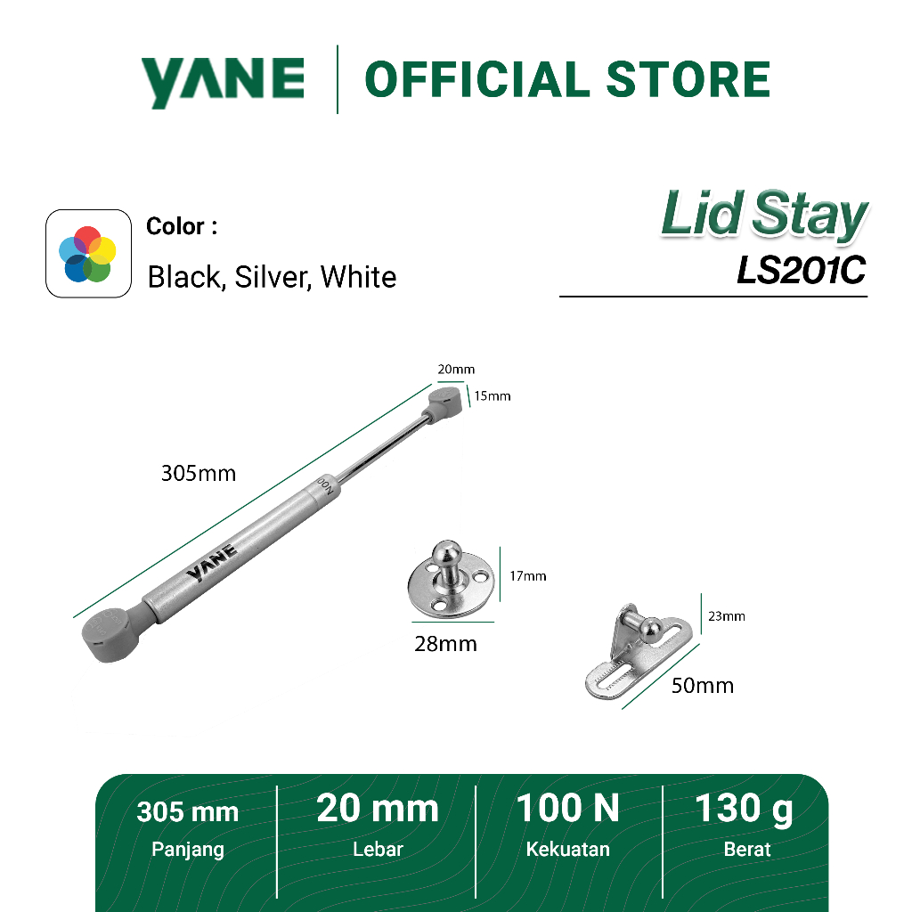 Engsel Lemari / Gas Spring loaded Lid Stays LS201 Yane Steel Plastic
