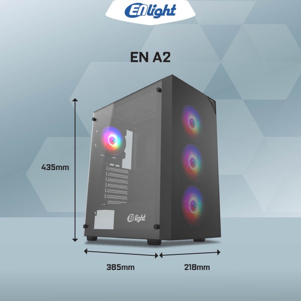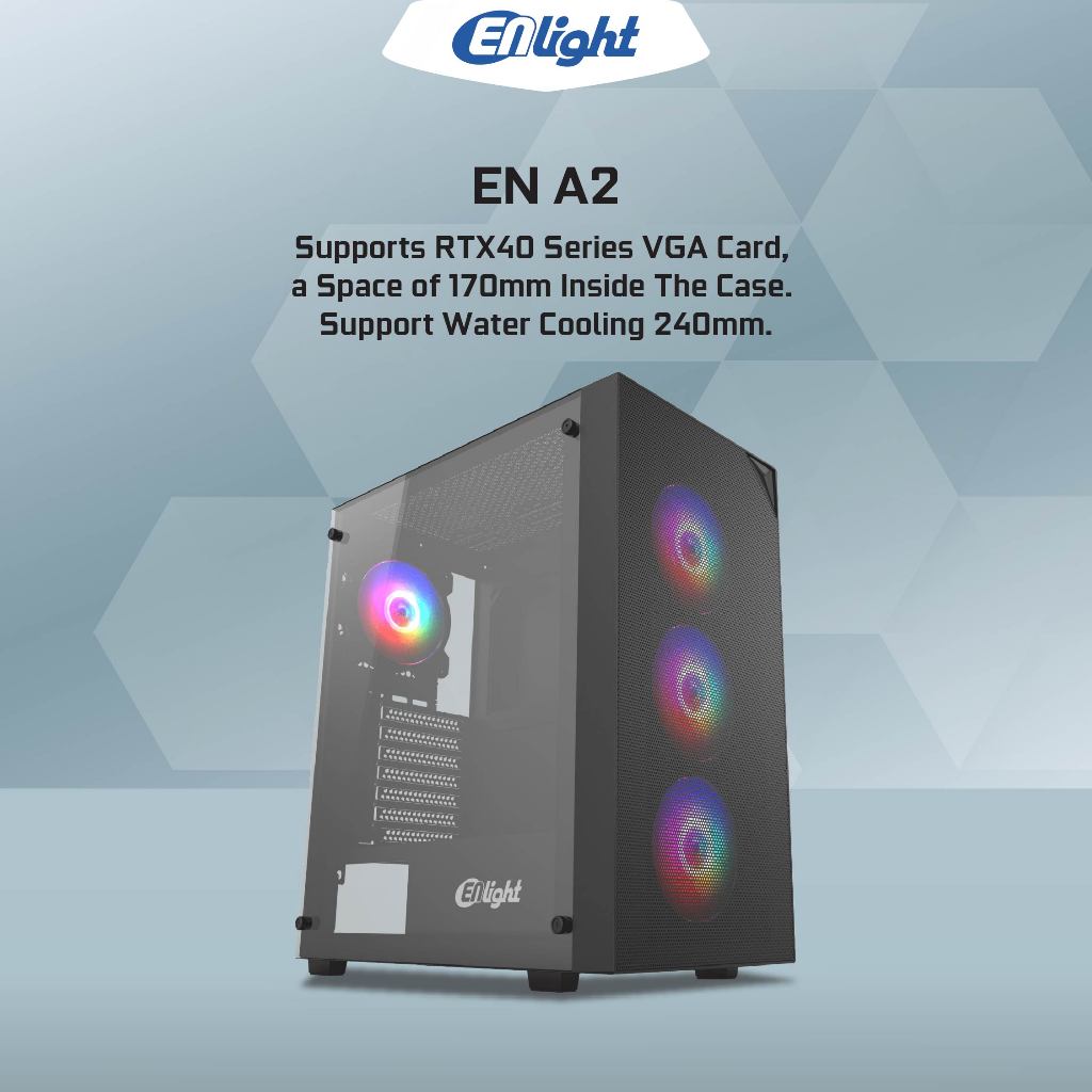 Enlight A2 Black ATX + 3 Fan RGB CPU PC Case Casing Komputer