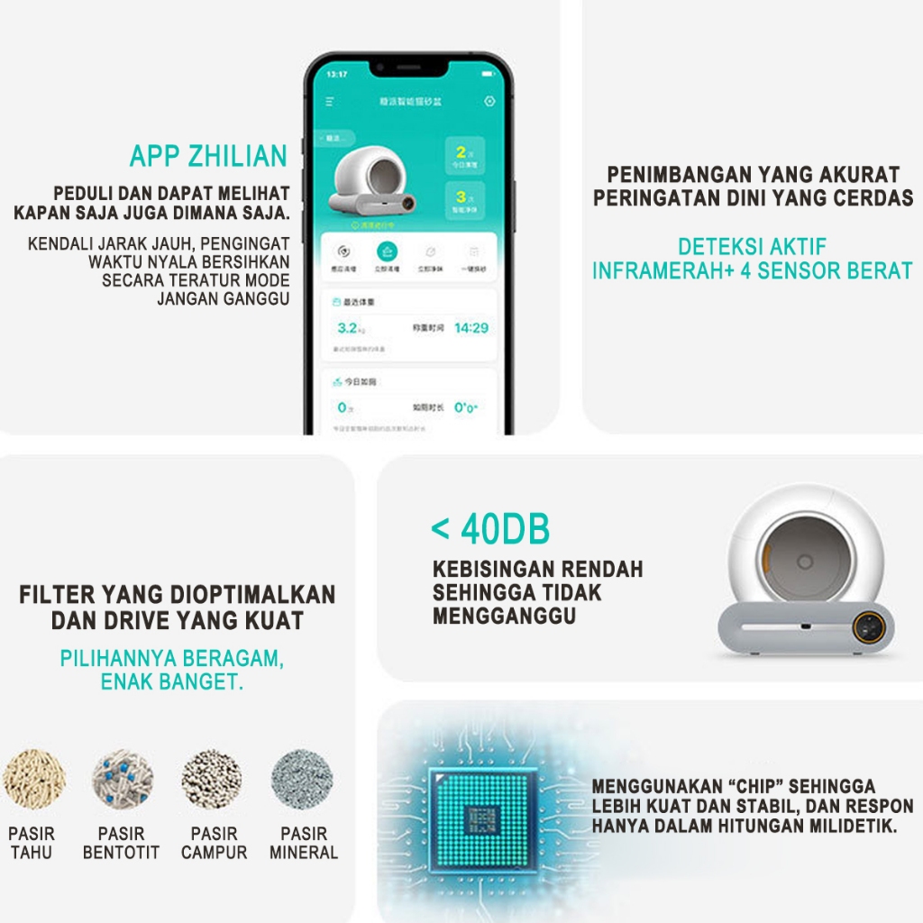 Epic Finds WiFi Automatis Profesional Litter Box 9L Automatic Self Cleaning App Kotak Kotoran Kucing Pintar Toilet Kucing Bau Penghisap Kotoran Listrik