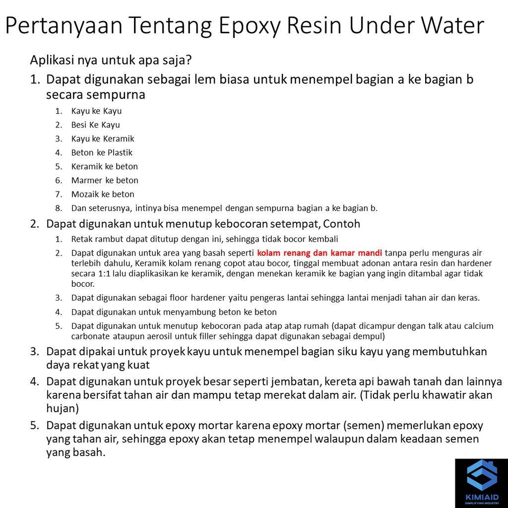 Epoxy Resin Under Water - 2Kg - Lem Epoxy Tahan Air - Lem Beton - Lem Material - Kaca Besi Karet