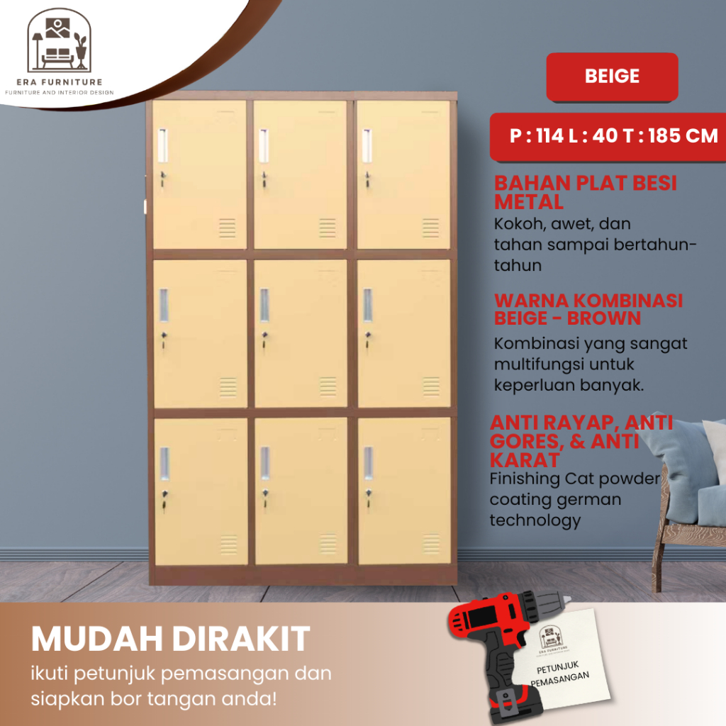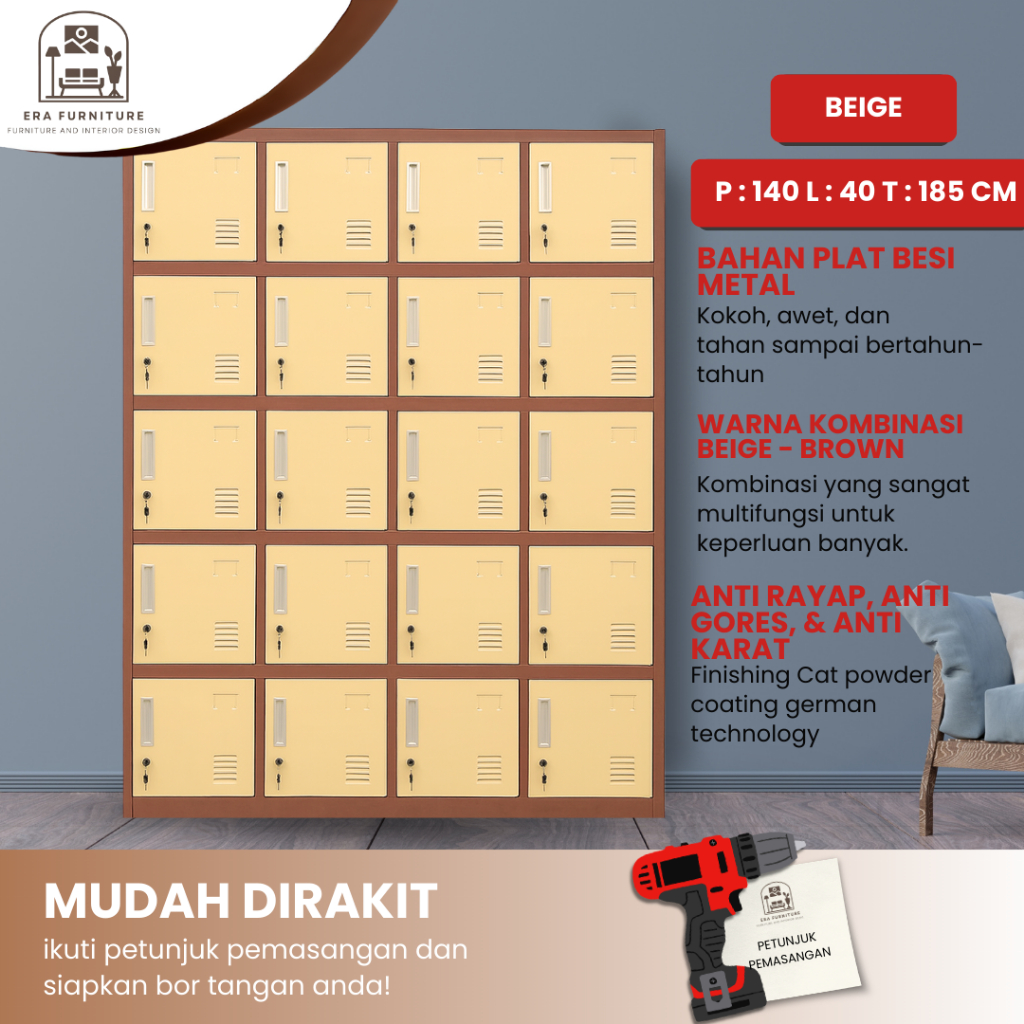 Era Furniture - VIP GOLD Loker Besi Jumbo Loker Full Face Helm Loker Karyawan Loker Gym Loker Sekolah Loker Penyimpanan Kantor VG 420 / VG 415 / VG 412 / VG 409 / VG 406