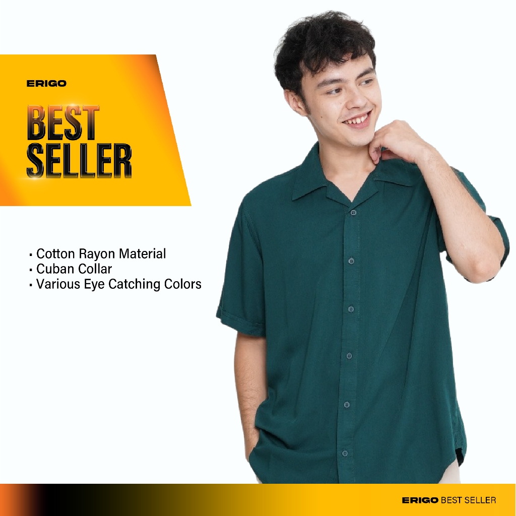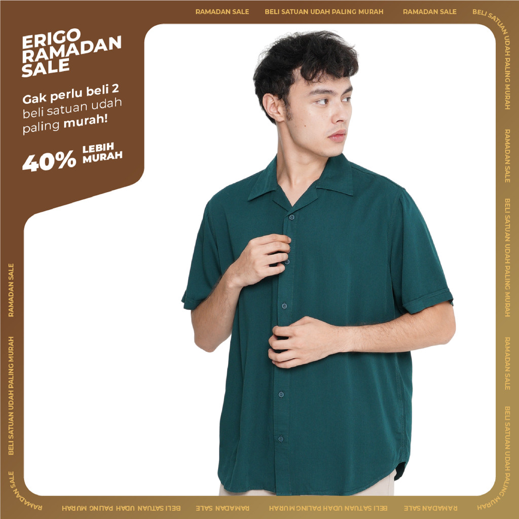 Erigo Short Shirt Nessie Dark Green - Kemeja Lengan Pendek Rayon Unisex