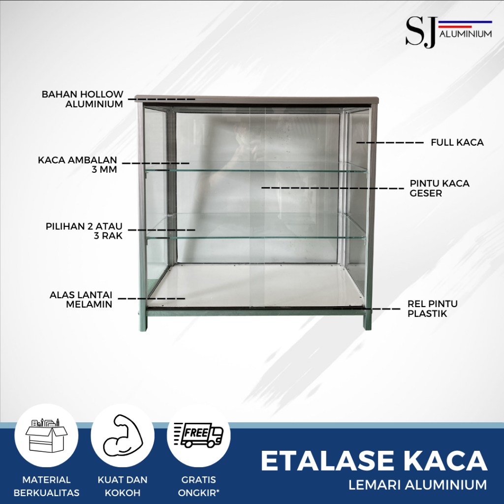 Etalase Kaca Aluminium / Etalase Display / Lemari Kaca / Rak Kaca / Rak Dapur Serbaguna - 50 x 25 CM / 2 Rak