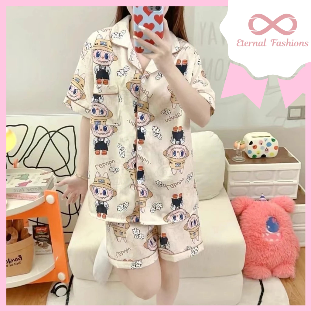 EternalFashions Pajamas Labubu | Baju Tidur Dewasa Labubu Import | Piyama Labubu Celana Pendek | Baju Tidur Labubu Celana Panjang Viral