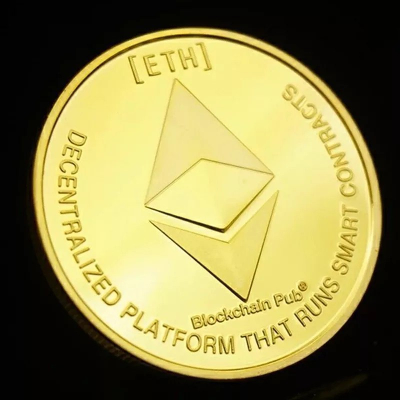 Ethereum Gold Plated Koin Crypto Fisik Koleksi Souvenir Gift with Case