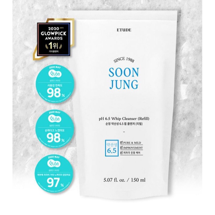 Etude house soon jung pH 6.5 whip cleanser 150ml/250ml/150ml refill