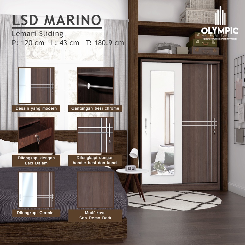 MORE Olympic Lemari Pakaian Sliding / Lemari Baju Sliding / Lemari Sliding / LSD MARINO