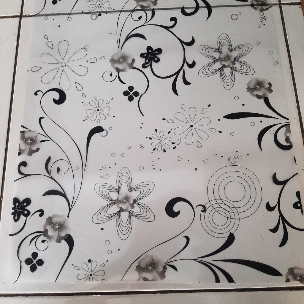Eva Luvgreen Stiker Kaca Motif Batik Hitam Abstrak Ukuran 45x100cm Sandblast Kaca Es Kaca Buram GS 076