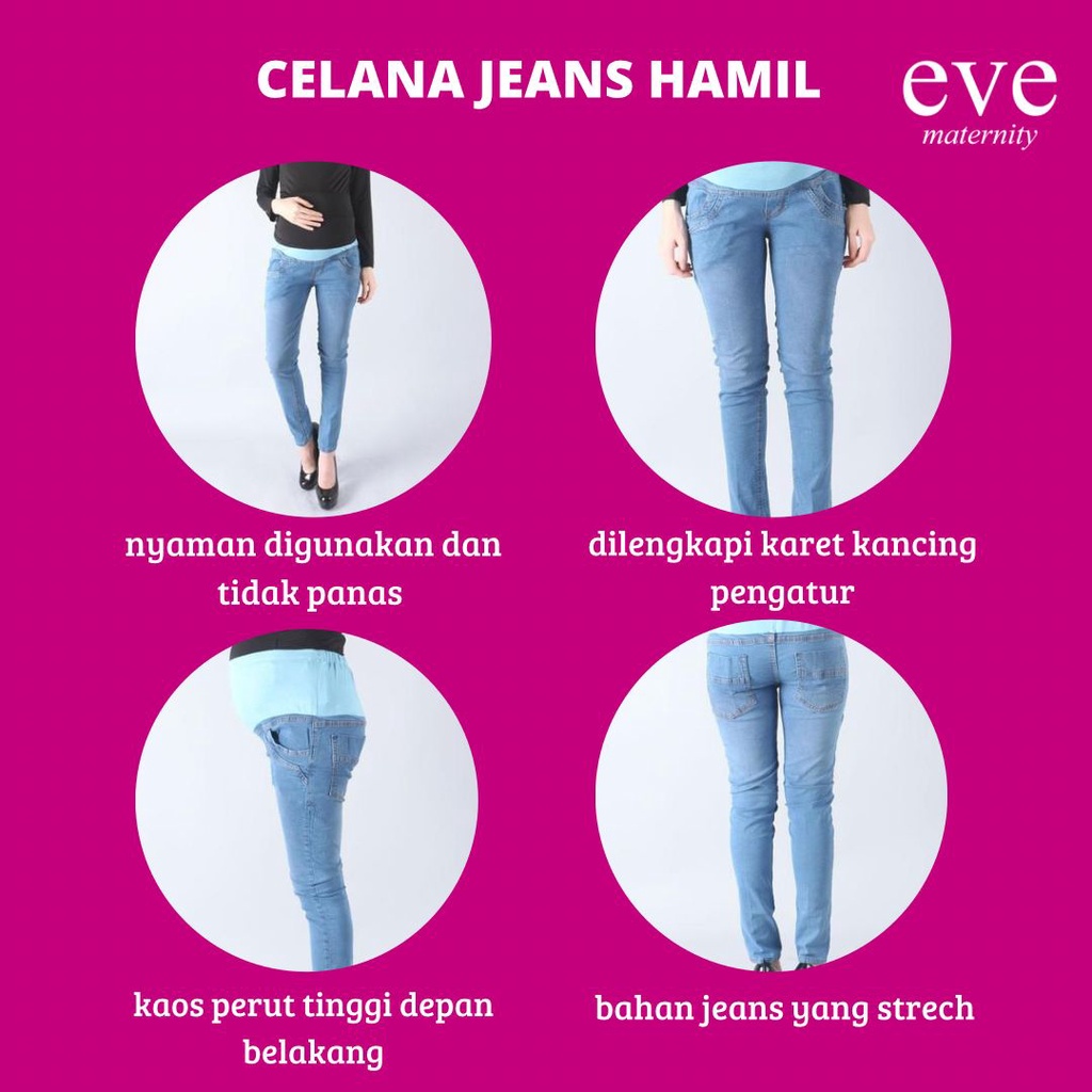 Eve Maternity - Celana Hamil Jeans Hamil Kaos Perut Karet Kancing Pensil JP037 JP022B JP029B