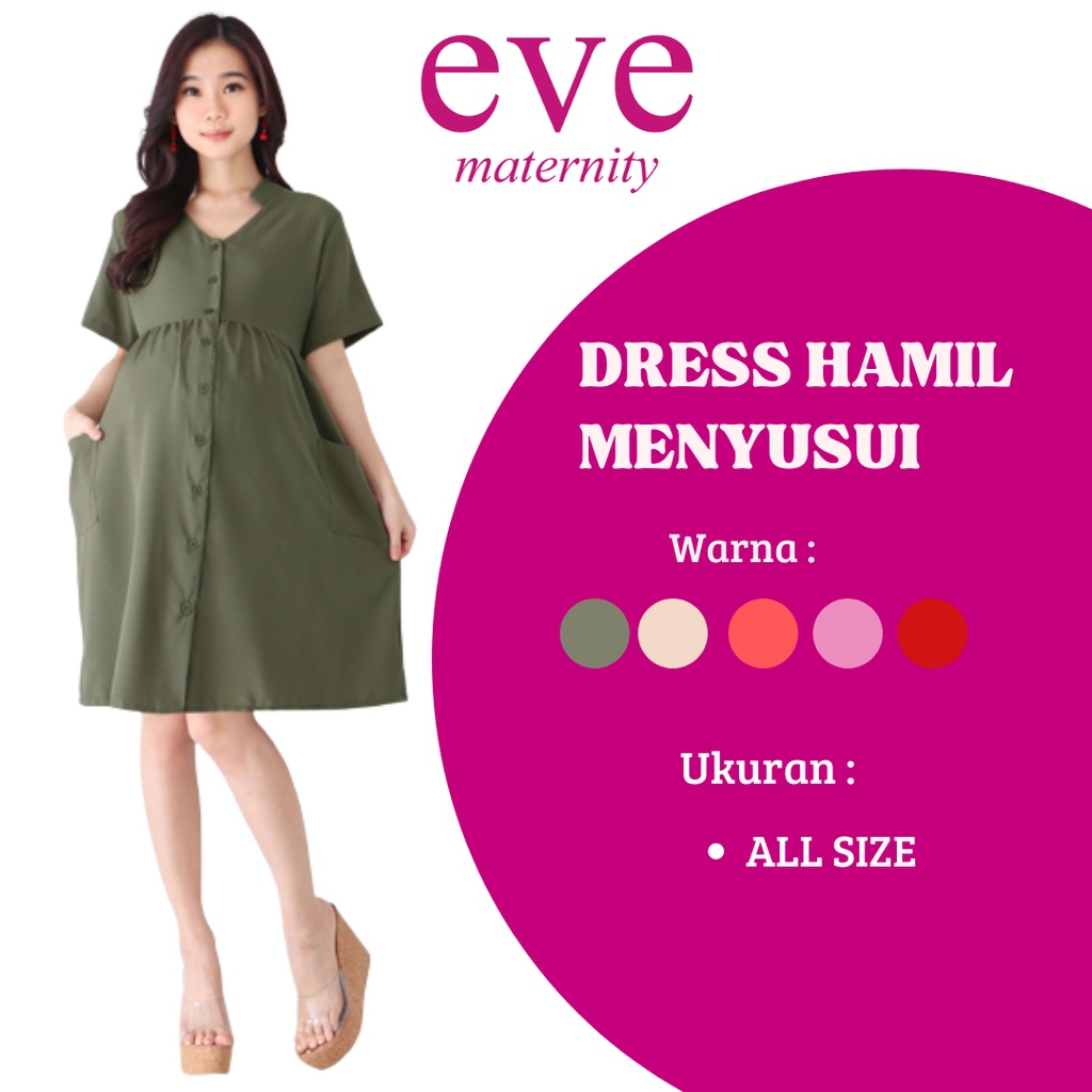 Eve Maternity Button Dress Baju Hamil Menyusui Kekinian FDD031