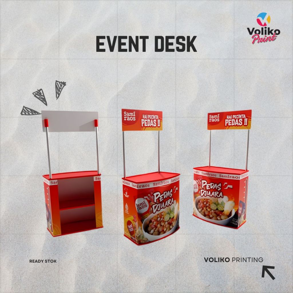 Event Desk | Meja Demo Promosi | Meja Pameran | Booth Portable | Meja Display Bongkar Pasang | Meja Promosi Include Printing