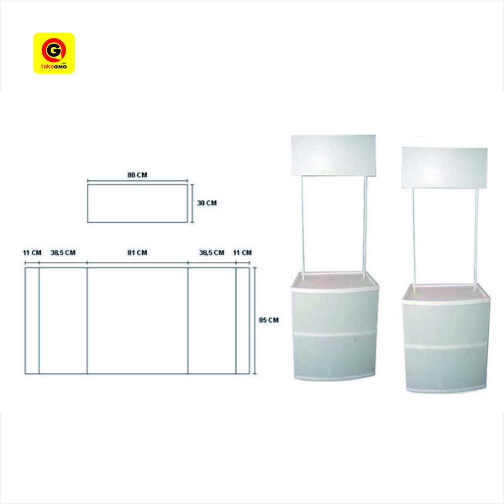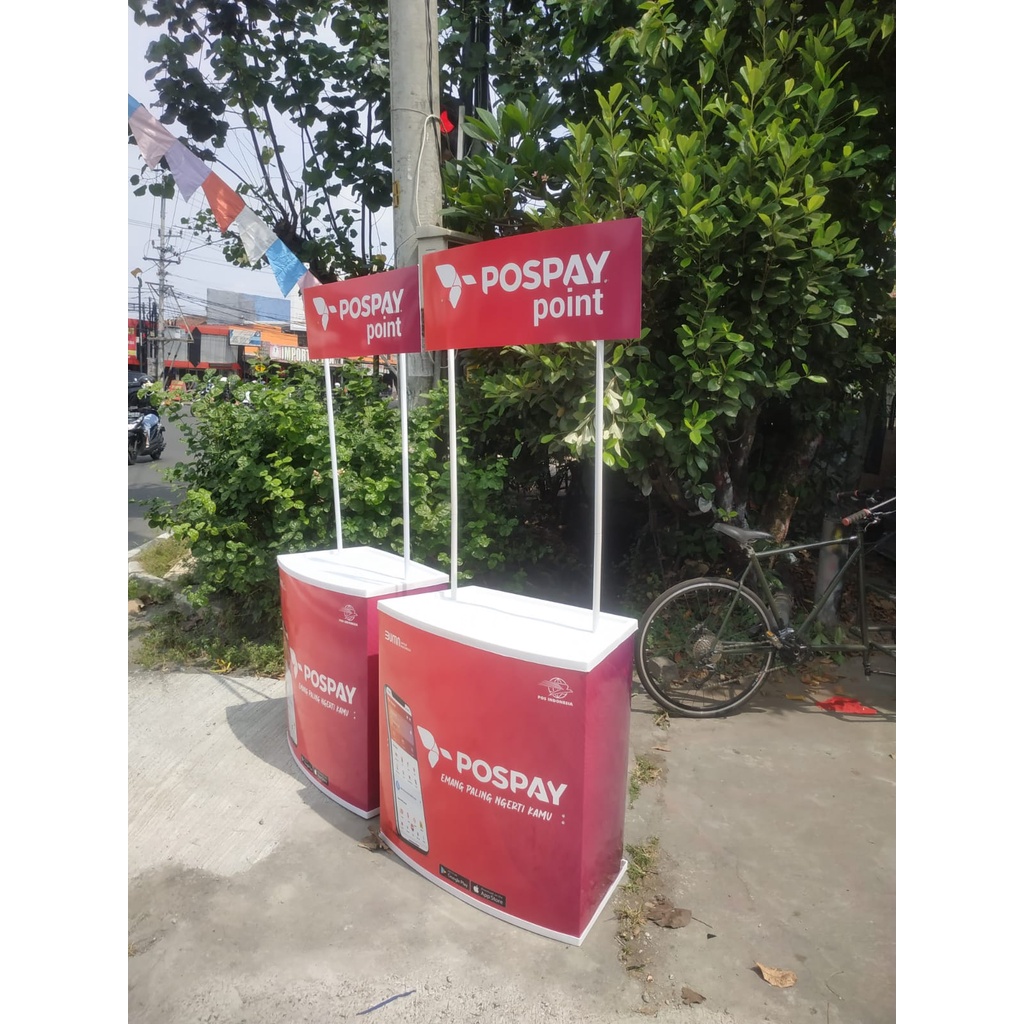 Event desk PVC booth lipat, meja lipat untuk pameran dan promosi. pakai stiker premium