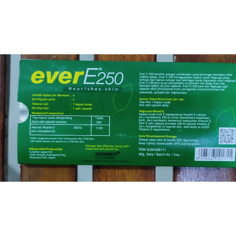 Ever E 250 6 Kapsul / Vitamin E Untuk memelihara Kesehatan Kulit