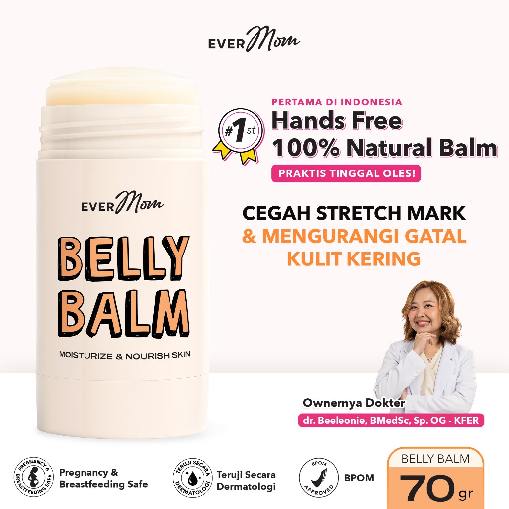 Evermom Natural Belly Balm Hands Free Mess Free - Krim Cegah Stretch Mark & Melembapkan Perut Ibu Hamil [BPOM]