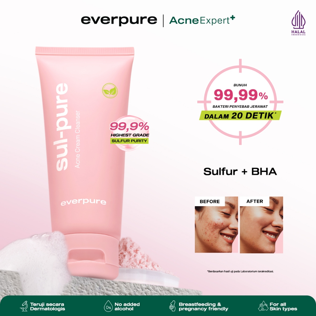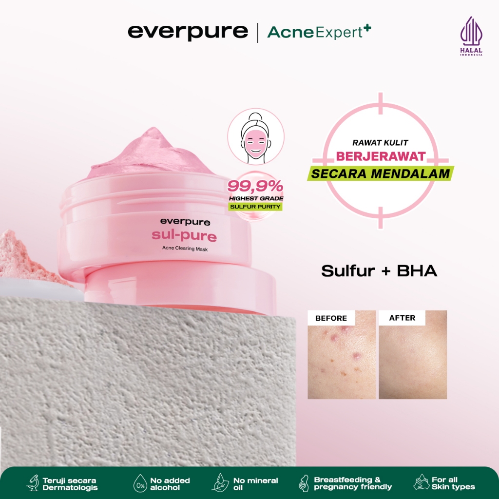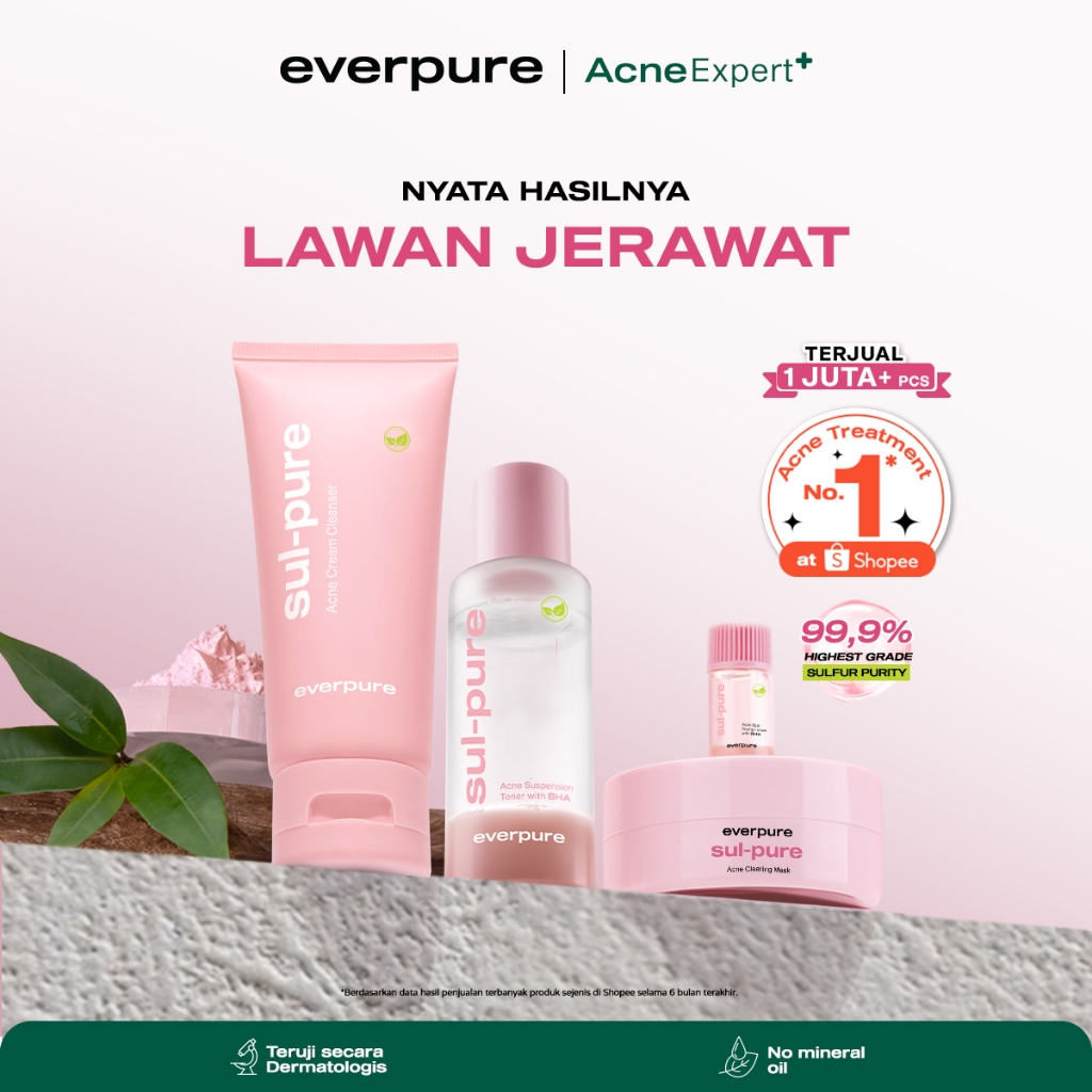 [Sulpure Series] EVERPURE Sul-pure - Paket Perawatan Kulit Berjerawat Dan Bebas Pori (Sabun Cuci Muka, Obat Totol Dan Masker) Dengan Sulfur & BHA [BPOM]