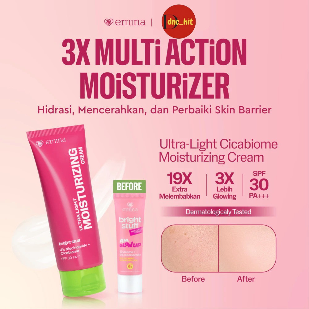 Emina Bright Stuff Ultra-Light Moisturizing Cream 20 ml - Pelembab Wajah Mencerahkan, Mengandung SPF 30 PA++