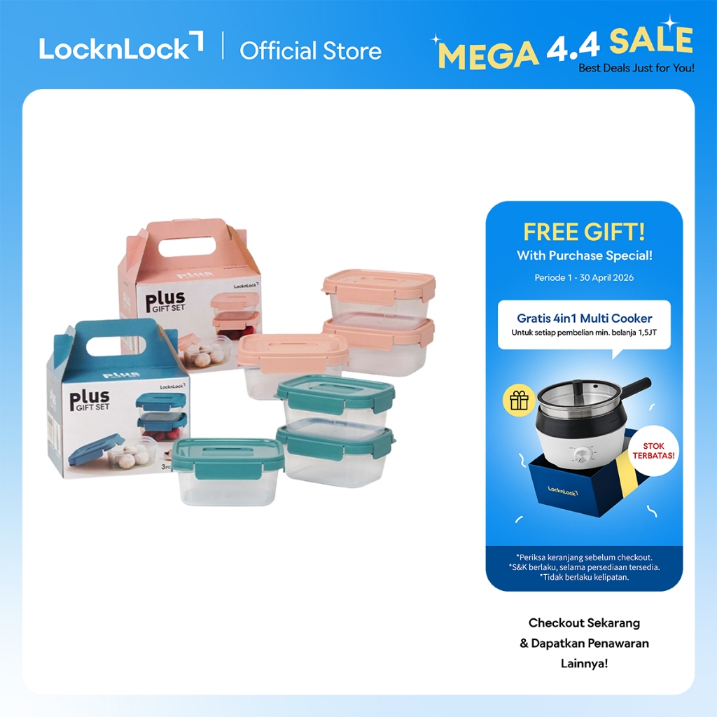 LocknLock Kotak Makan Plus Gift Set Chak Chak Container 920ml 3P Set - LTN330S3