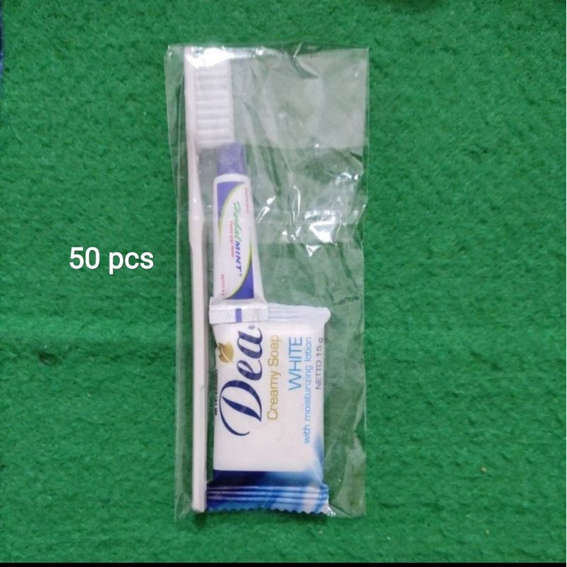 Paket amenities hotel hemat HJ (sikatgigi,odol,sabun) 50pcs
