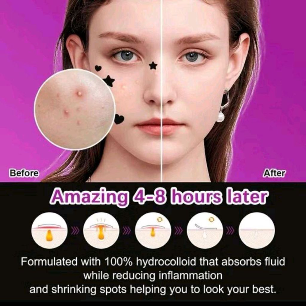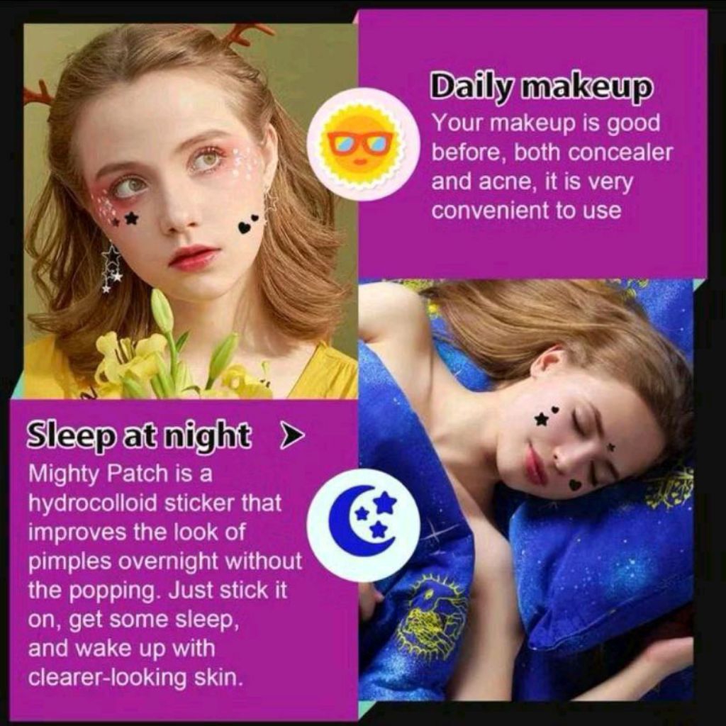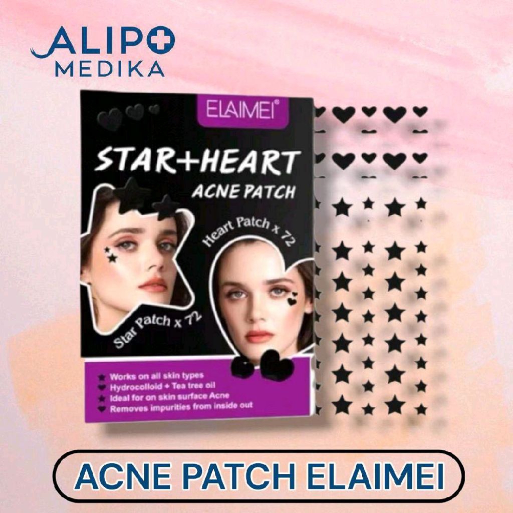 Elaimei Acne Pimple Patch Star Heart Shape Black - Stiker Penghilang Jerawat Hydrocolloid untuk Semua Jenis Kulit