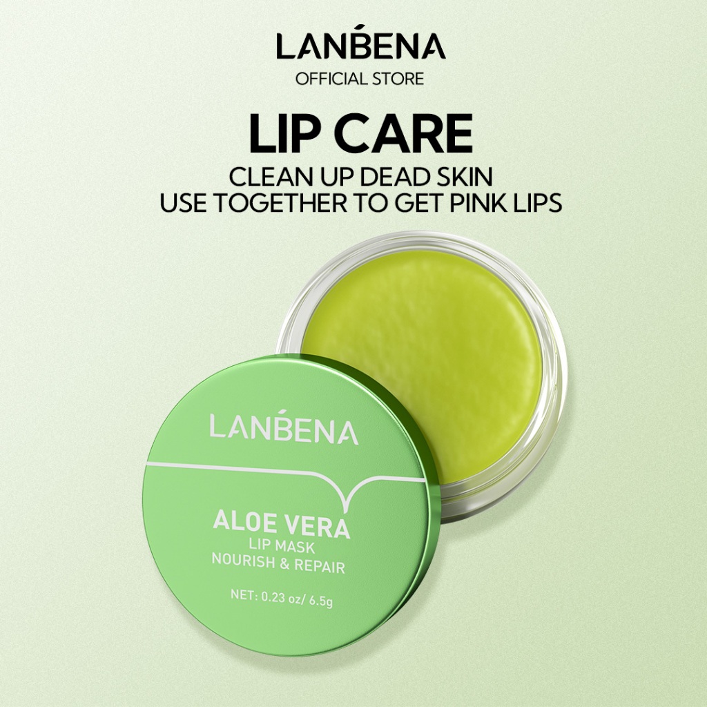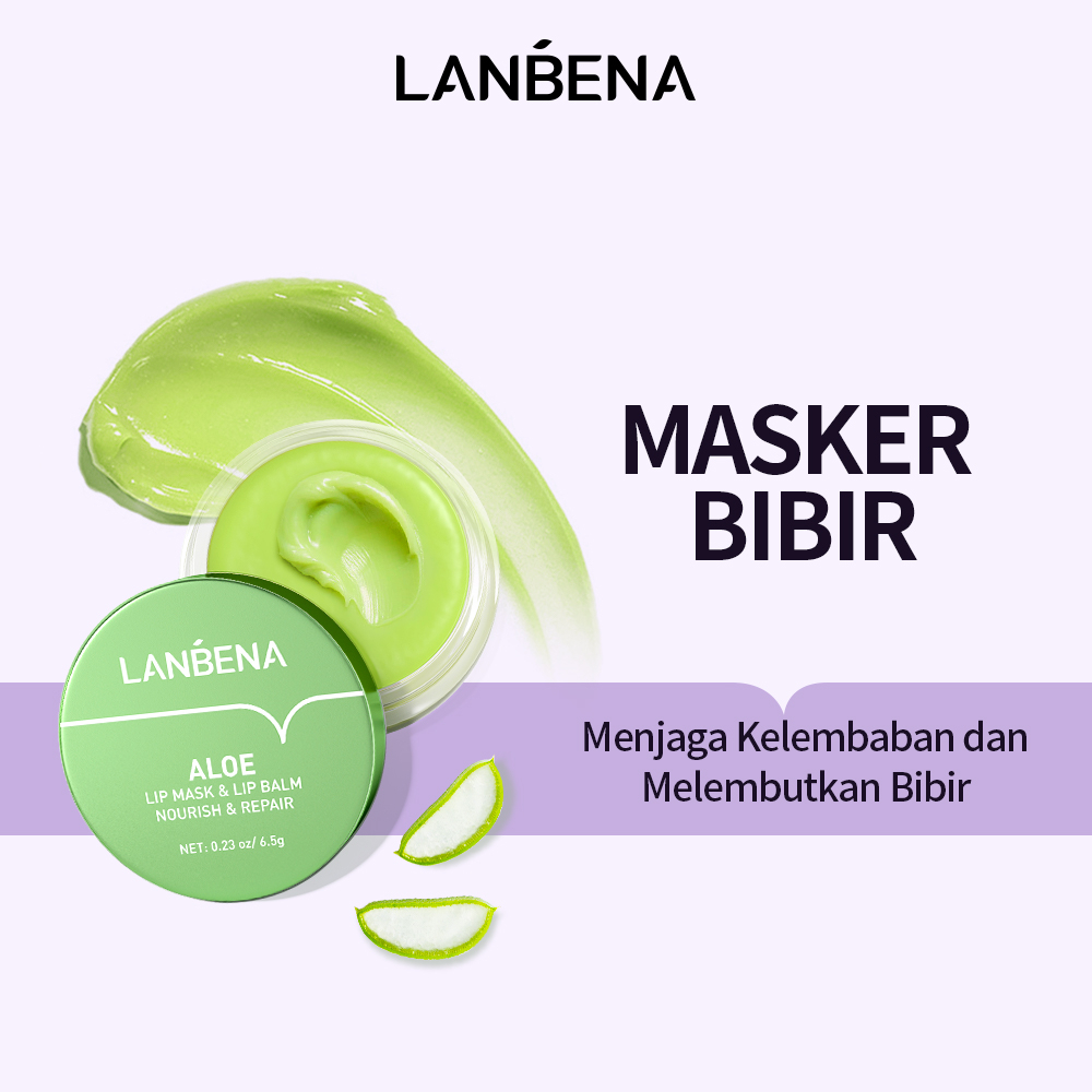 LANBENA Aloe Lip Mask Balm - Masker Bibir Melembabkan Repairing Plumping Hydrating Nourishing Perawatan Pelembab Masker Fades lip wrinkles Bibir Lip Care Perawatan kulit (6.5g)