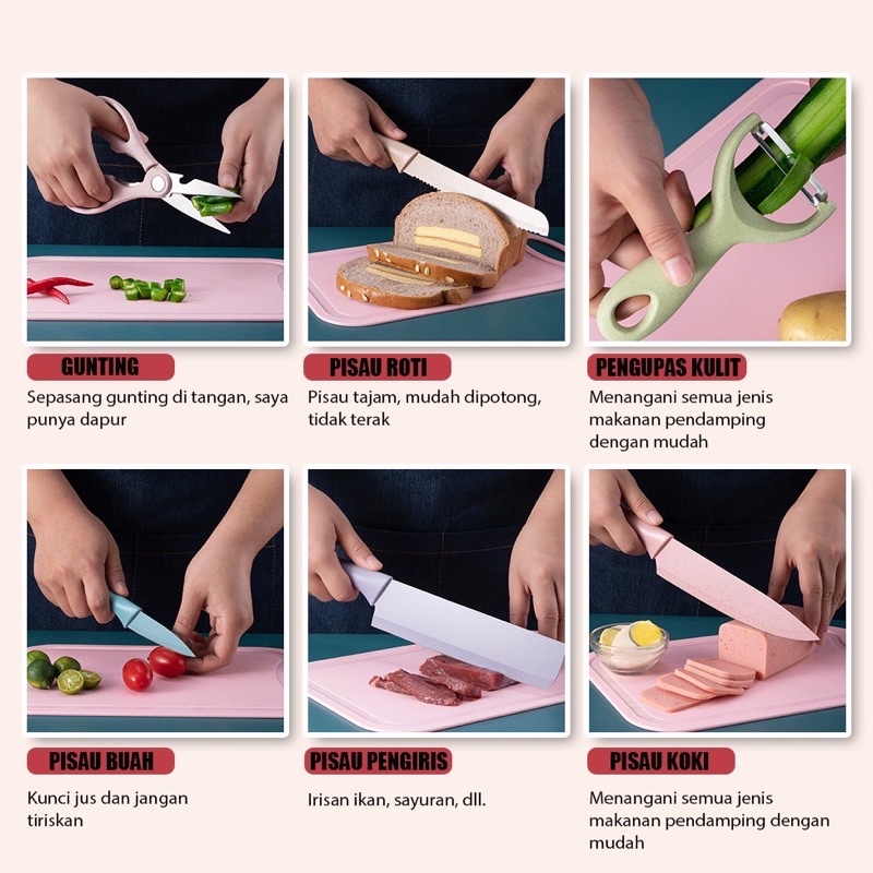 NEW MOTIV SET PISAU KERAMIK SULTAN MACARON 6in1 PISAU DAPUR PISAU MARMER