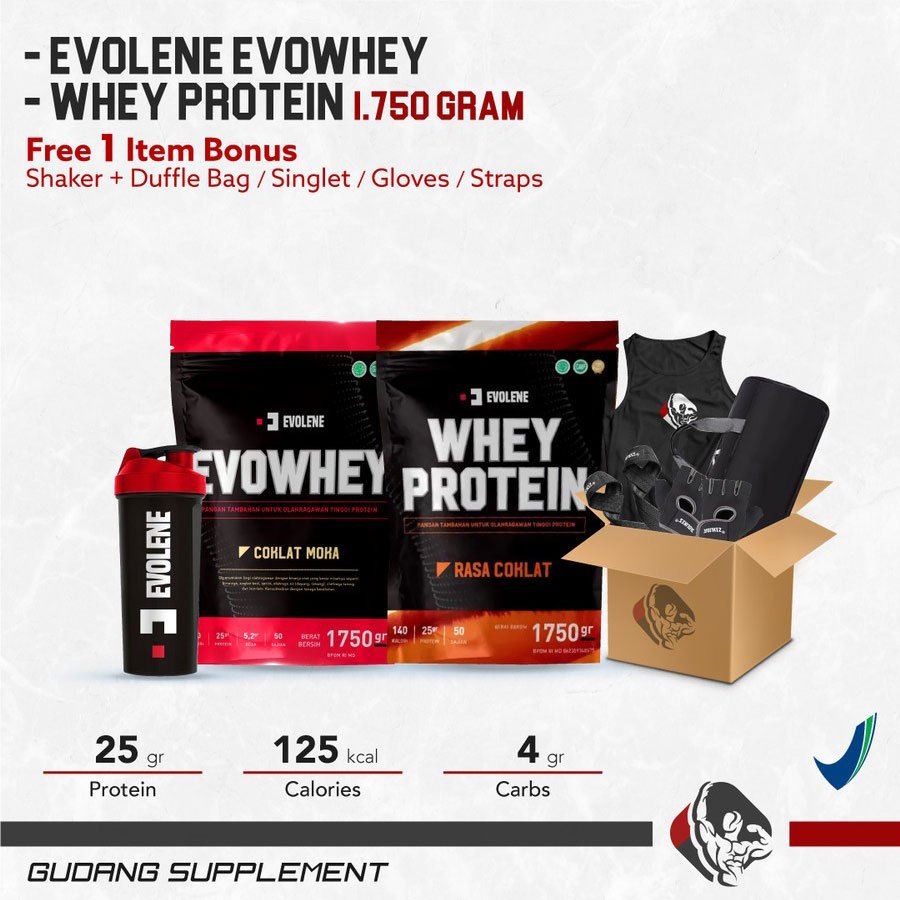 Evowhey Protein 4Lbs 50 Sachet Evolene BPOM Tinggi Protein Plus Bonus Shaker Evolene
