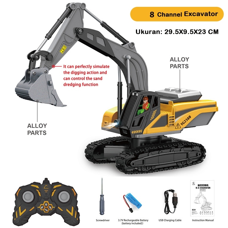 YOYOTOY Excavator Remote Control 16 Saluran Mainan Mobil Eskavator Dengan Lampu eko Remot Mainan Ekskavator Truck Mainan Anak RC Excavator