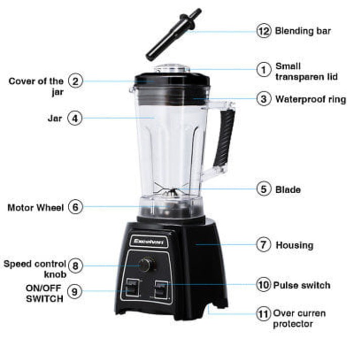 Excelvan Heavy Duty 1500W 2L Commercial Blender( cocok utk cafe )