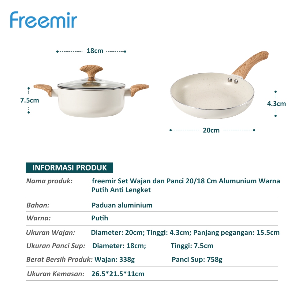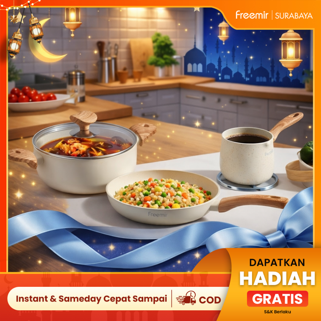 [Rekomendasi Ramadhan] freemir Paket Panci Teflon Putih Sakura Series Granite Anti Lengket Terlaris