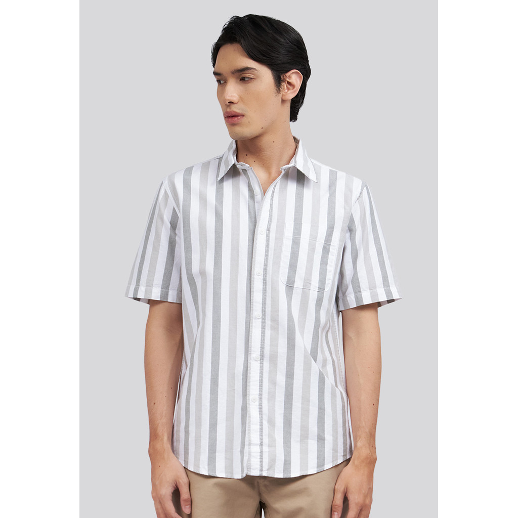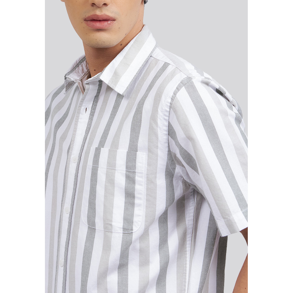 Executive Regular Fit Short Sleeve Stripes Shirt Sage