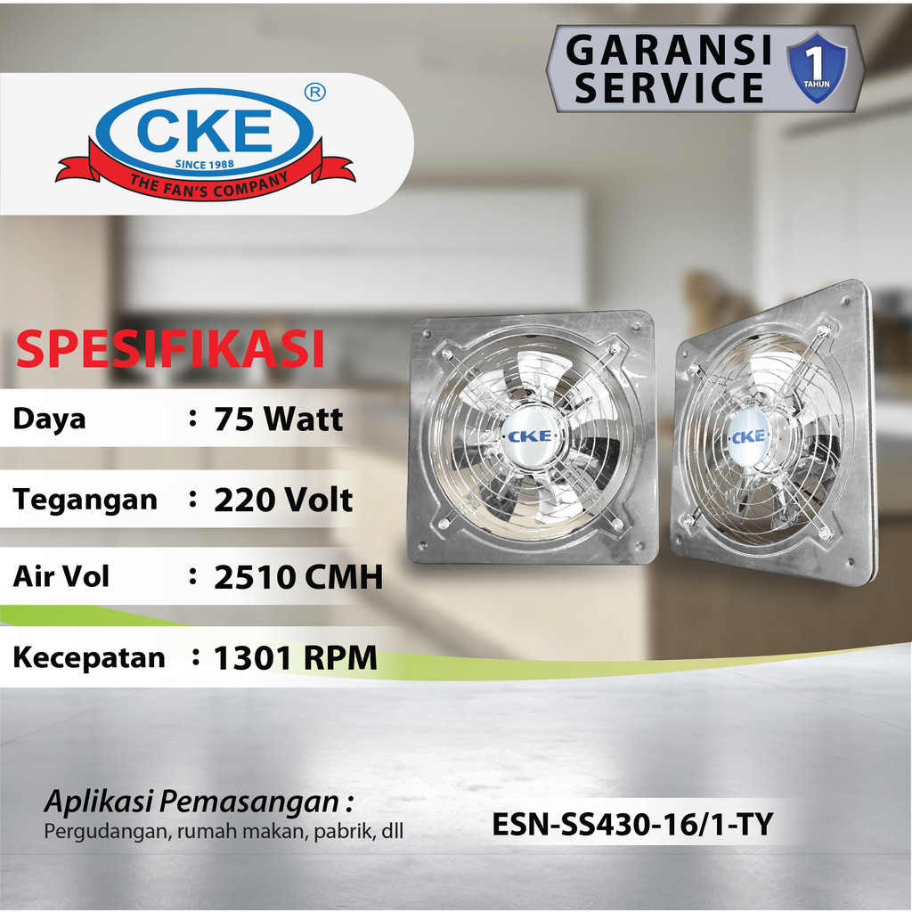 CKE Exhaust Fan 16 Inch Stainless Steel Hexos Hisap Dinding Tembok Anti Karat Dapur Industri Gudang