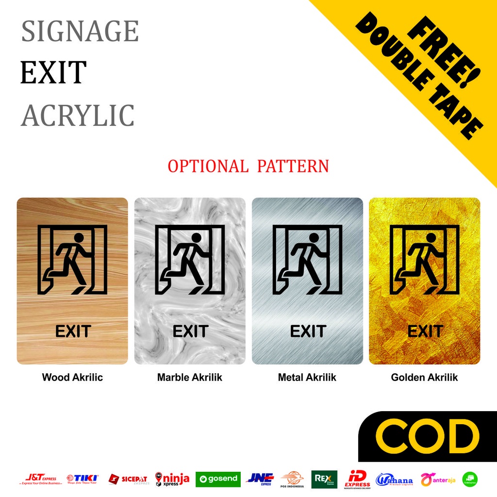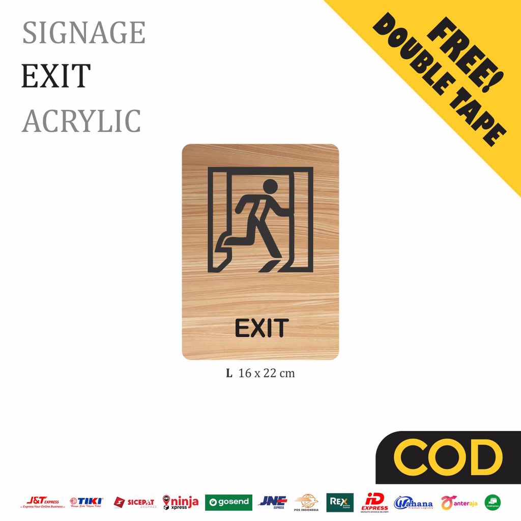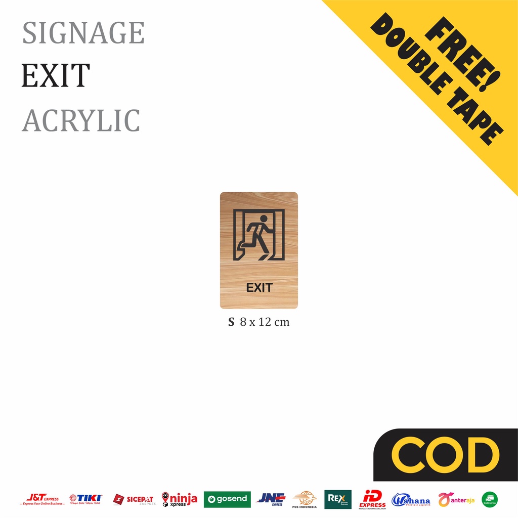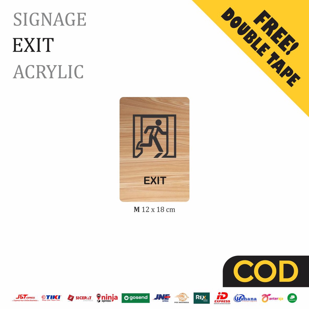 Exit Sign Board Kayu Print Signage Label Petunjuk Tanda Arah Ruangan