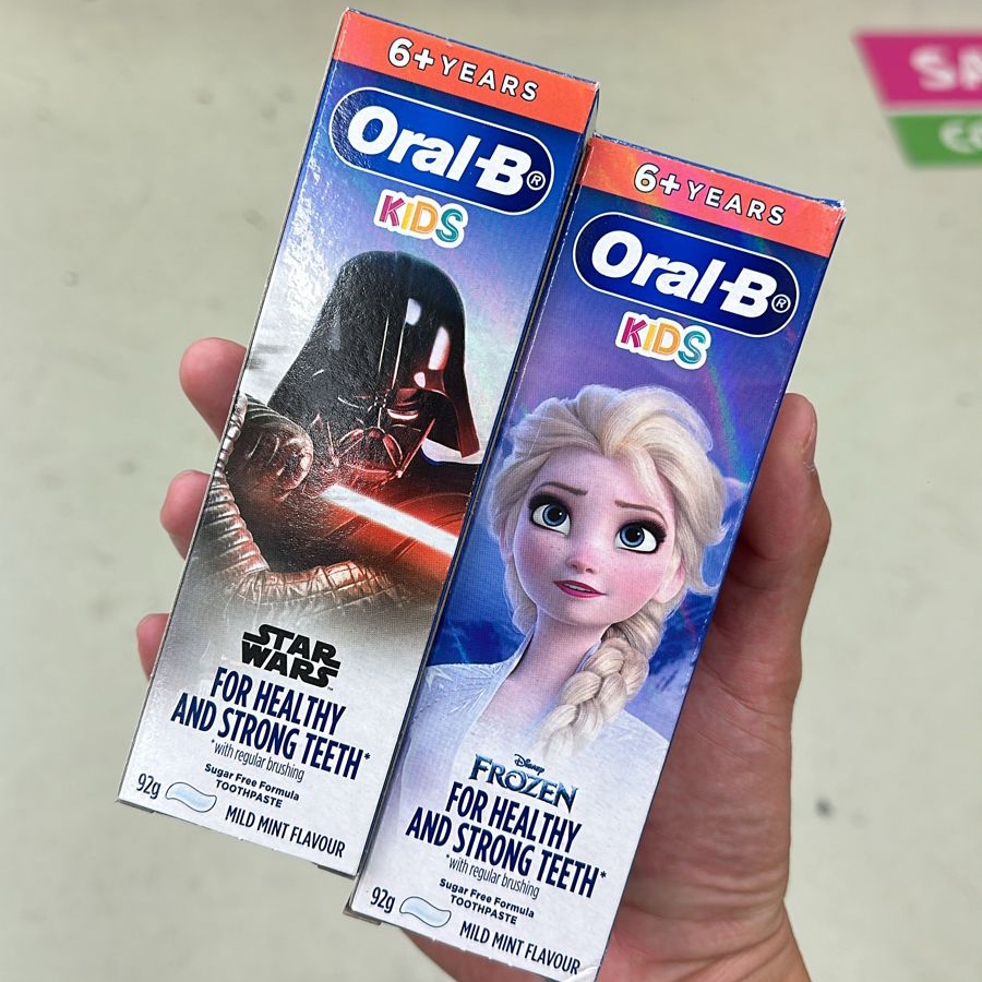 Exp 09/2027 Oral B pasta gigi anak dgn Fluoride usia 0-2tahun, 3 tahun+ & 6 tahun+ Kids Toothpaste Frozen Elsa Anna Star wars Spiderman Kids 92g OralB - Made in Australia