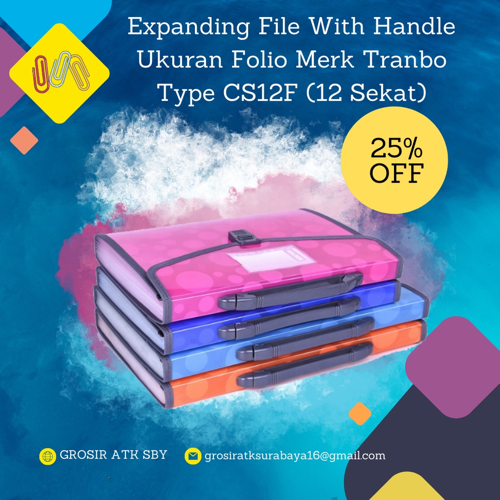 Expanding File With Handle Ukuran Folio / F4 Type CS12F (12 Sheet / Sekat)