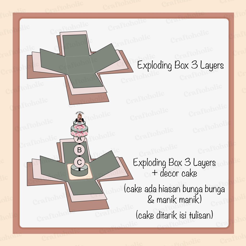 Exploding Box 3 Layers (Segi 4) / Explosion Box / Kotak Kado / Kado Foto / Kado Custom / Hadiah Custom / Memory Box