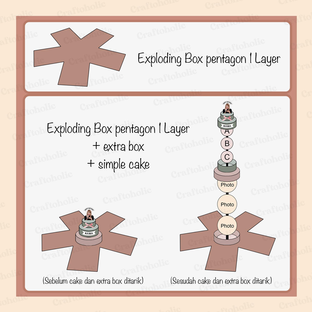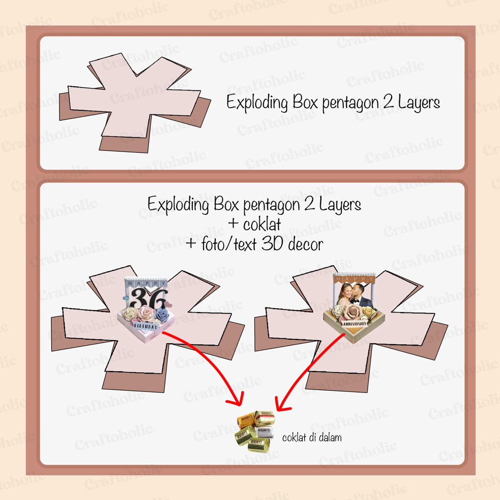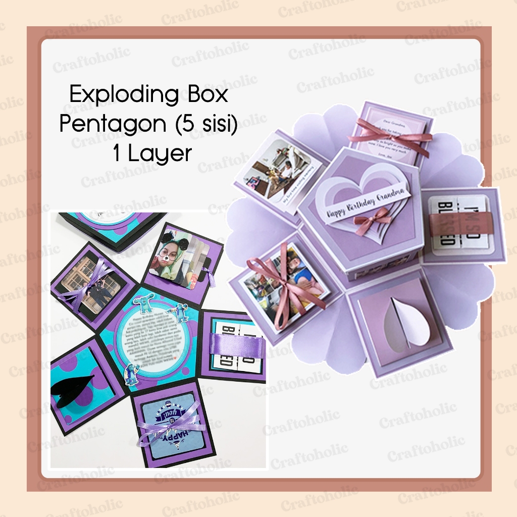 Exploding Box Pentagon 1 Layer (Segi 5) / Explosion Box / Kotak Kado / Kado Foto / Kado Custom / Hadiah Custom / Memory Box