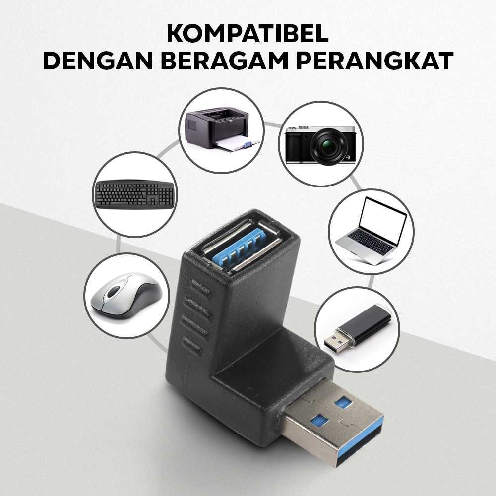 Extension USB 2.0 & 3.0 bentuk L cowok ke cewek Up Down male to female untuk menjangkau tempat