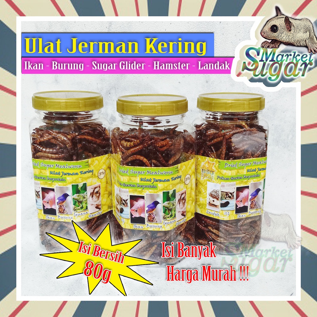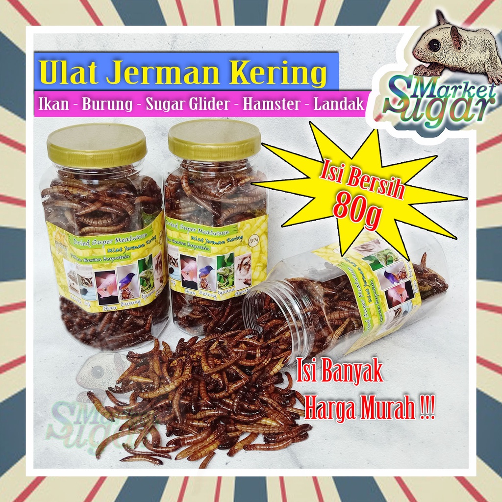 Extra Banyak Ulat Jerman Kering Dry Super Worm Makanan Hewan Hamster - Ikan - Burung - Sugar Glider
