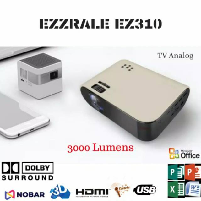 Ezzrale EZ310s Mini Led Projector tv tunner wireless display Version 3000 Lumens
