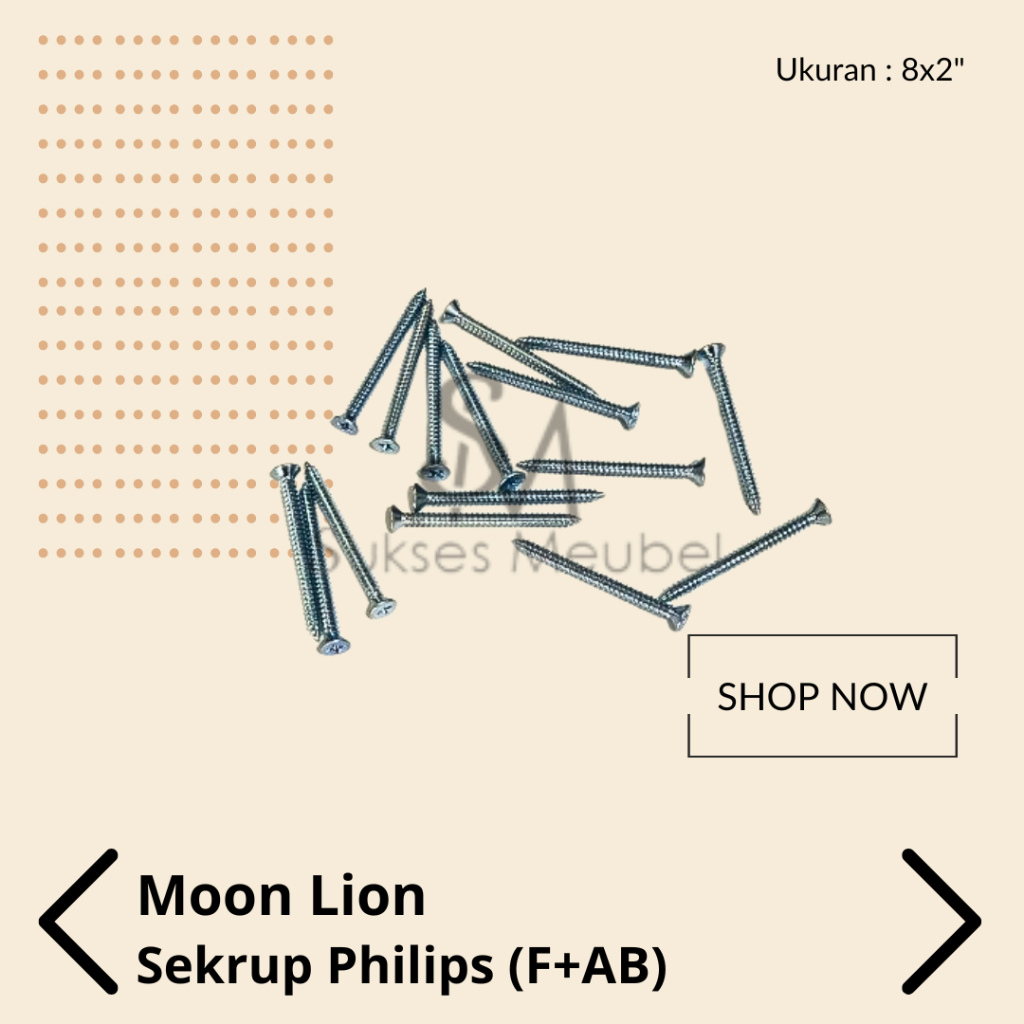 F+AB ML 8X2" = 1 PAK / SEKRUP PHILIPS FLAT HEAD MOON LION 5 CM
