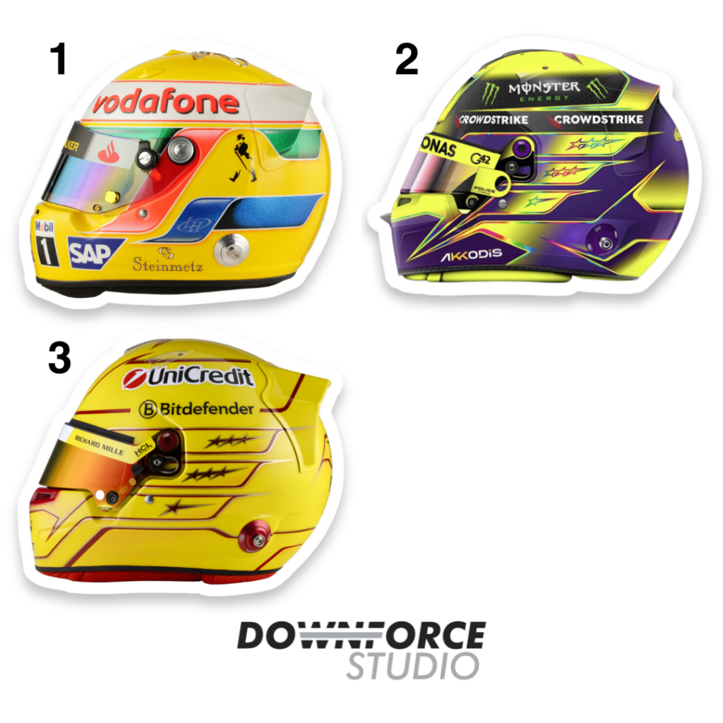 F1 Helmet Stickers Formula 1 - Leclerc, Schumacher, Hamilton, Vettel, Senna, etc. Vinyl Sticker [Downforce Studio]
