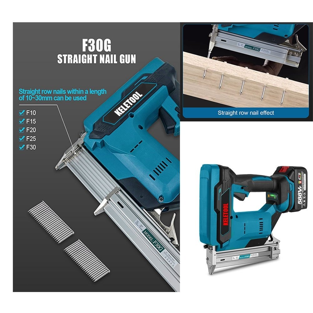 F30 Lithium-Ion Cordless Nailer Gun Heavy Duty Brad Straight Finish Tacker Tool Mesin Paku Tembak