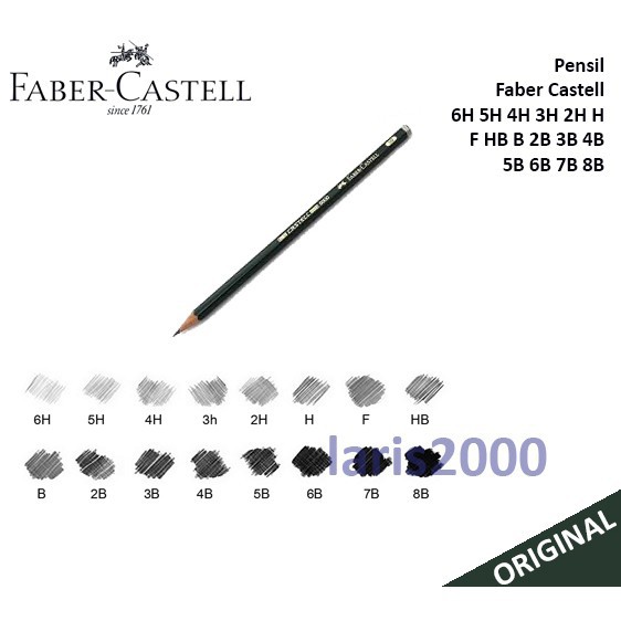 FABER CASTELL Pensil B, 2B, 3B, 4B, 5B, 6B, 7B, 8B, H, HB, 2H, 3H, 4H, 5H, F (SATUAN)