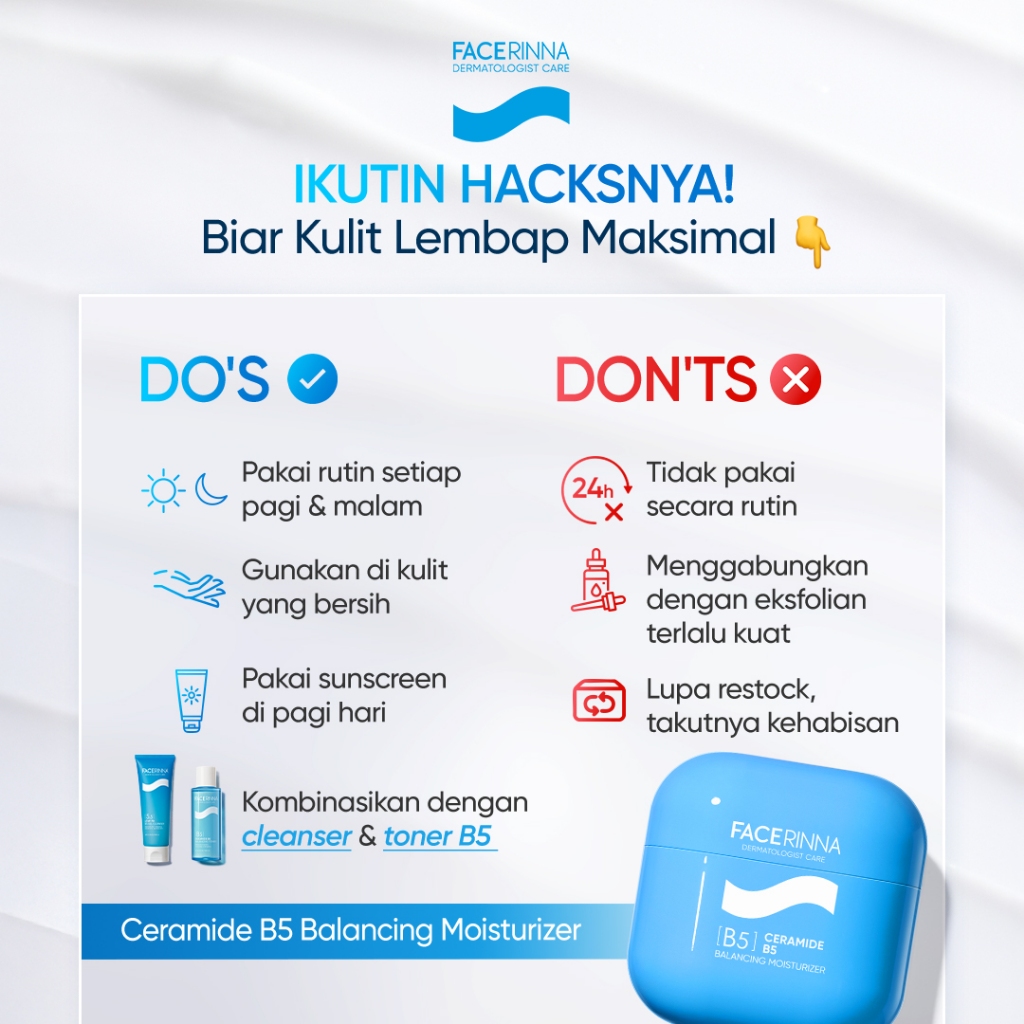 FACERINNA Ceramide B5 Balancing Moisturizer | Menjaga Skin Barrier Memperkuat Mencerahkan wajah Penyerapan cepat Menjaga Keseimbangan Minyak dan Air Kulit Menenangkan Kulit Pelembab Wajah Day Cream Night Cream Skincare BPOM Untuk Kulit Sensitif